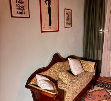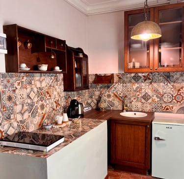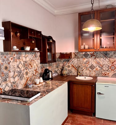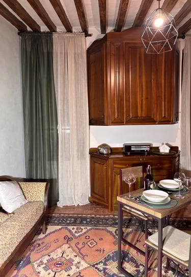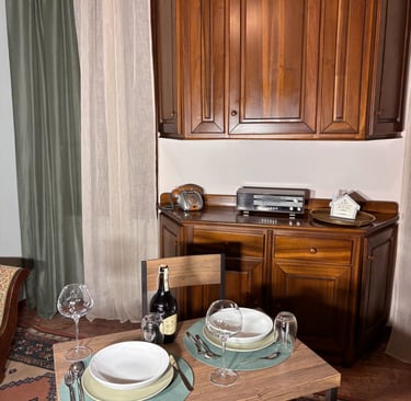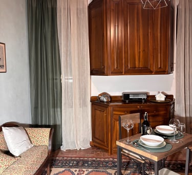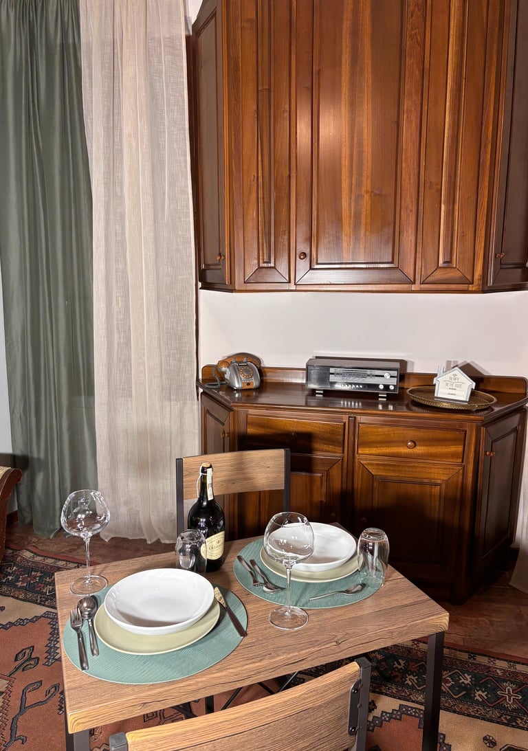 Pensata per accogliere comodamente due persone, offre una cucina a induzione, macchina del caffè, set di cortesia per il bagno e un’atmosfera calda e accogliente, ideale per chi desidera vivere un soggiorno intimo, originale e ricco di charme.